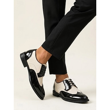Klassische, elegante Herrenschuhe aus echtem Leder in Schwarz und Weiß für Hochzeiten und festliche Anlässe