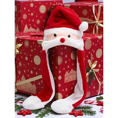 Weihnachtsmütze für Damen mit Plüschbart und Ohrenschützern, lustiges Urlaubsaccessoire für den Winter, rot-weiße Farbe