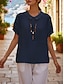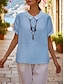 Damen Hemd Baumwoll-Leinen-Hemden Sommerhemd Knopfhemd Vorderknoten Rüsche Patchwork Einfarbig Einfach Urlaub Mode Lässig Kurzarm V Ausschnitt Normale Oberteile Streetwear Strand Ferien Blau Sommer