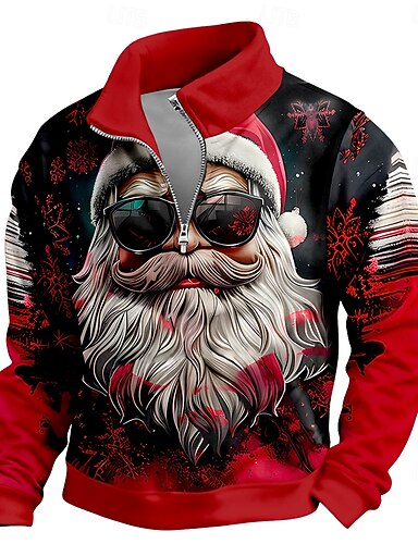 Weihnachten Herren Weihnachtsmann Pullover Cool Täglich Stilvoll Langarm Stehkragen Outdoor Heim Geschenk Blau Rote Purpur Grün Reißverschluss Herbst Winter Designer S M L XL XXL XXXL