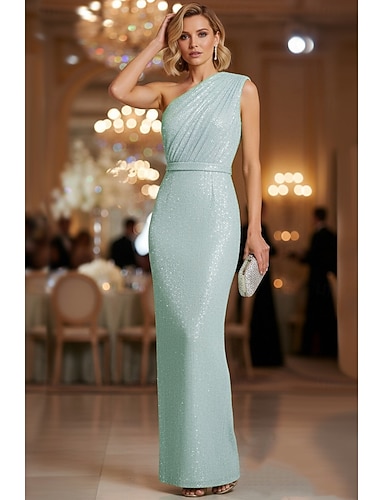 Schlauchkleid Bodenlang Abendkleid Abiballkleider Abendkleid Ballkleid Festliche Kleidung Elegant Langarm Ein-Schulter Hochzeit Formell Satin mit Glitzer Rüschen Schlitz