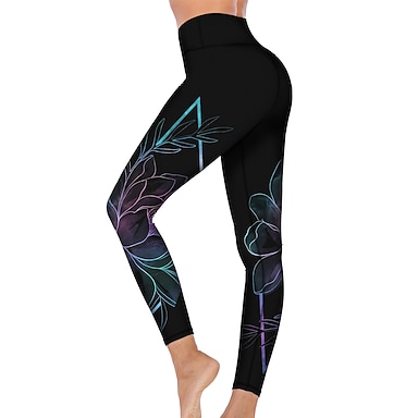 Damen Yogahose Po-Lifting Bauchkontrolle Hohe Taille Fitnesstraining Laufen Fitness Strumpfhosen Leggings Blumendruck Schwarz Herbst Winter Sport Sportkleidung Hohe Elastizität