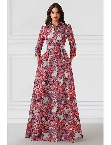 A-Linie Bodenlang Hemdblusenkleid Abendkleid Langarm Hemdkragen Elegant Vintage Formell Polyester Brautmutterkleid mit Schleife(n)