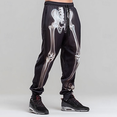 Herren Skelettkostüme Jogginghosen Jogger Hosen Mittlere Taille Zugband elastischer Bund dunkler Gothic-Stil Urlaub Streetwear Athletische Jogginghosen mit Taschen Frühling Herbst 3D Druck Gelb Rot