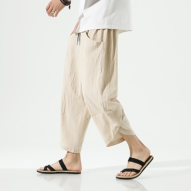 Herren Leinenhosen Hose Sommerhose Baggy-Hosen Strandhose Elastischer Bund Kordelzug Gerader Schnitt Einfach Komfort Atmungsaktiv Volle Länge Lässig Täglich Ferien Urlaub Mode Weiß Rosa Unelastisch