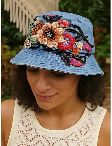 Damen-Bucket-Hut aus besticktem Denim – Blumendesign, stylischer Sommerhut, perfekt für Outdoor-Aktivitäten, Strand und Freizeit