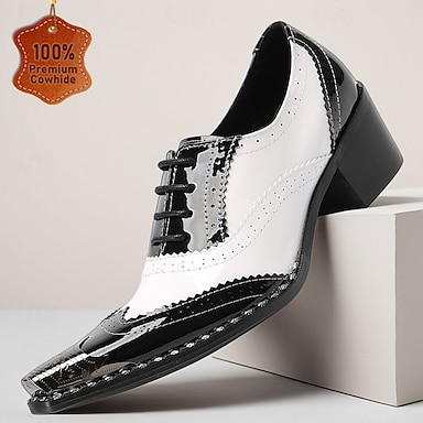 Elegante Herrenschuhe aus echtem Leder in Schwarz und Weiß – stilvolle und stilvolle Schuhe für Hochzeiten, perfekt für Hochzeitsgäste und Bräutigam.