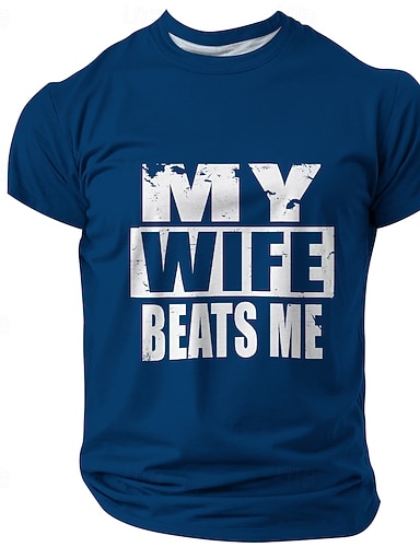 Herren Buchstabe Grafikdrucke T Shirt Grafischen T-Shirt Polyester Kurzarm Grafik Hemd Blau Schwarz Weiß Bequemes T-Shirt Täglich Outdoor Modedesigner-Kleidung