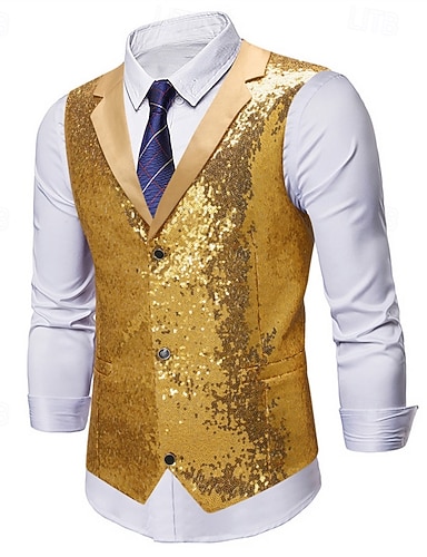 Herren Weste Gilet Urlaub Party Geschäft Party Frühling & Herbst Knöpfe Tasche Pailletten Polyester Bequem Einfach Einreihig Revers Normale Passform Silber Schwarz Gold Weste