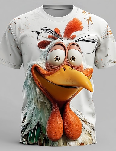 Herren Tiermotiv 3D Lustig T Shirt Kurzarm T-Shirt 3D-Druck Rundhalsausschnitt Hemd Übertrieben Designer Party Straße Lässig Weiß 1 Weiß 2 Sommer Frühling Ganzjahres Bekleidung S M L XL XXL XXXL