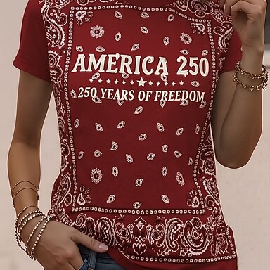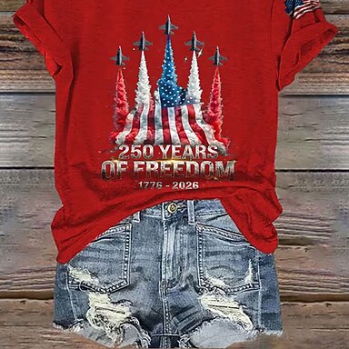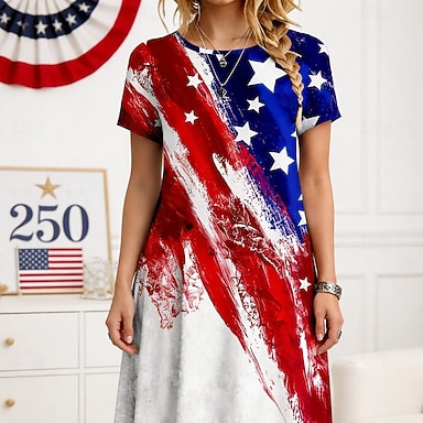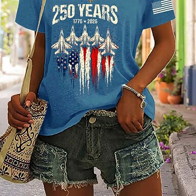 Unabhängigkeitstag Patriotic Damen T-Shirt Grafik Flagge Vintage Stilvoll Lässig Kurzarm Rundhals Regelmäßige Tops Täglich Wochenende Druck Rot Blau Sommer Frühling
