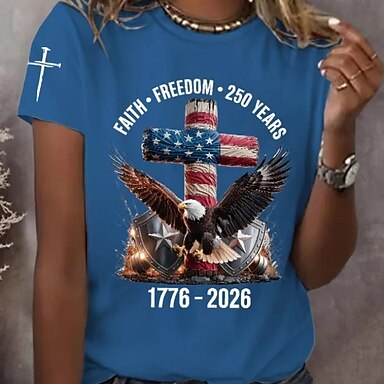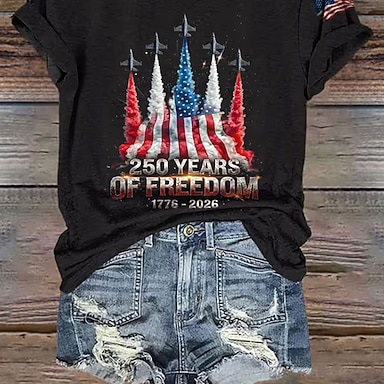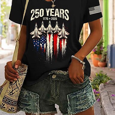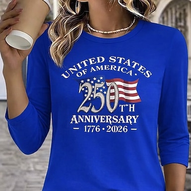 Unabhängigkeitstag Patriotische Damen T-Shirt Grafik Flagge Vintage Stilvoll Klassisch Kurzarm Rundhals Reguläre Tops Täglich Wochenend Druck Blau Schwarz Weiß Rot Grau Sommer Frühling