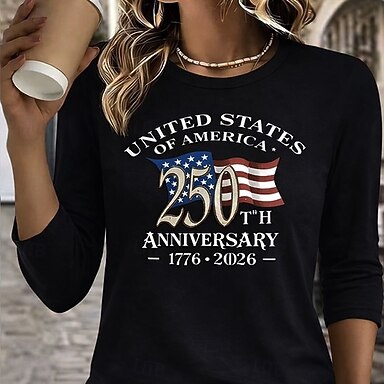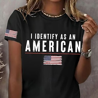 Unabhängigkeitstag Amerikanisches Jubiläum Patriotische Damen T-Shirt Druck Grafik Flagge Buchstaben Stylisch Klassisch Lässig Kurzarm Crewneck Reguläre Oberteile Alltag Blau Schwarz Weiß Rot Sommer