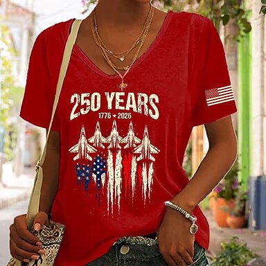 Amerikanischer Unabhängigkeitstag Damen T Shirt Druck Grafik Flagge Vintage Stilvoll Klassisch Kurzarm V Ausschnitt Normale Oberteile Täglich Rote Sommer Frühling