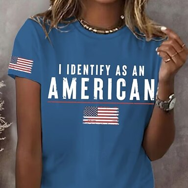 Amerikanischer Unabhängigkeitstag Damen T Shirt T-Shirt Druck Grafik Flagge Stilvoll Klassisch Lässig Kurzarm Rundhalsausschnitt Normale Oberteile Täglich Ausgehen Blau Rote Sommer Frühling