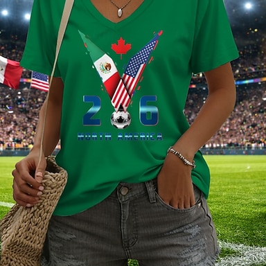 Unabhängigkeitstag patriotisches Damen T-Shirt Druck Grafik Flagge Vintage stilvoll klassisch Kurzarm V-Ausschnitt lange Oberteile täglich Blau Schwarz Rot Grün Sommer Frühling