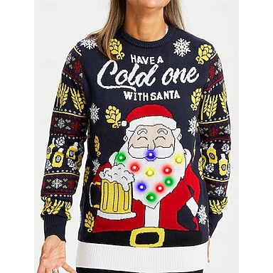 Weihnachtsmann Hässlicher Weihnachtspullover Pullover Jumper Damen Weihnachten Neuheit Lustig Strick Leuchten Muster Erwachsene Weihnachten Neujahr Heiligabend Weihnachten Party Oberteil
