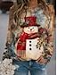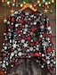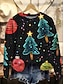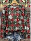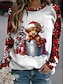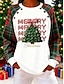 Damen Sweatshirts Grafik Weihnachten Lässig Langarm Rundhalsausschnitt Normale Oberteile Lässig Ferien Druck Schwarz Weiß Rote Khaki Herbst Winter