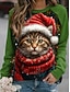 Weihnachten Damen Tiere Katze Pullover Grafik Katze Warm Klassisch Lässig Langarm Rundhals Regular Tops Zuhause Straße Alltag Druck Weiß Pink Rot Blau Herbst Winter