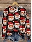 Damen Kapuzenpullover Weihnachtsmann Warm Lässig Langarm Mit Kapuze Lange Oberteile Straße Alltagskleidung Ferien Knöpfe Druck Schwarz Dunkelpink Blau Herbst Winter