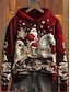 Damen Kapuzenpullover Grafik Weihnachtsmann Rentier Lässig Langarm Mit Kapuze Normale Oberteile Party-Abendmode Straße Alltagskleidung Wein Frühling Herbst Winter