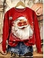 Weihnachten Damen Santa Claus Pullover Sweatshirt Grafik Claus Lässig Langarm Crew Neck Reguläre Tops Street Lässig Feiertag Druck Rot Blau Lila Grün Frühling Herbst Winter