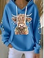 Damen Kapuzenpullover Grafik Kuh Weihnachten Lässig Langarm Mit Kapuze Normale Oberteile Alltagskleidung Lässig Sport Blau Schwarz Weiß Rote Herbst Winter