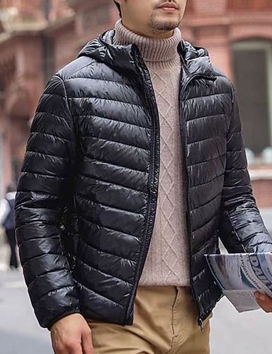 Herren Wintermantel Daunenjacke Gefütterte Jacke Tasche Polyester Urlaub Alltagskleidung Date Regulär Mode Lässig Bequem Thermowarm Winter Einfarbig Schwarz Weiß Gelb Rot Pufferjacke