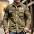 Herren Amerikanische US-Flagge Bestickt Fleecejacke Cargo-Jacke Taktisch Vintage Lässig Militär Sport & Outdoor Täglich Knöpfe Mehrere Taschen Herbst Winter Umlegekragen Langarm Schwarz Armeegrün