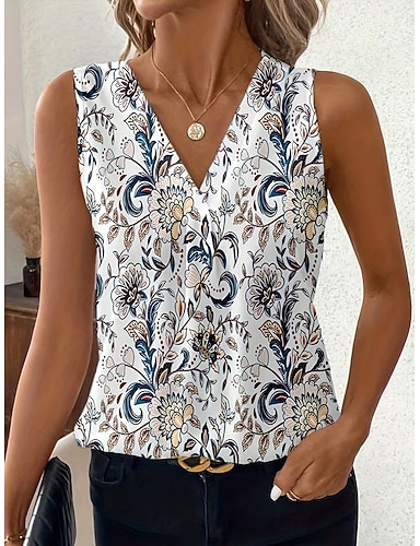 Damen Tank Top Blumen Grafik Elegant Vintage Stilvoll Ärmellos V Ausschnitt Normale Oberteile Lässig Täglich Blau Orange Khaki Sommer Frühling