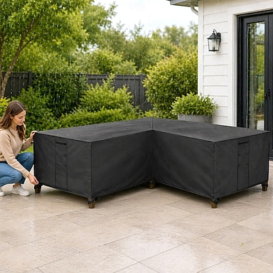 Gartenmöbelabdeckung, L-förmige Lounge-Abdeckung, wasserdichte Rattan-Sofaabdeckung, für Gartenmöbel, Sitzgruppen, Ecksofas, Ecklounge-Sets, Plane (270 x 270 x 90 cm, schwarz)