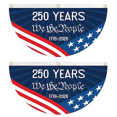 250. Jahrestag – Wir, das Volk – Patriotische, gefaltete Fächerflaggen-Girlande für Terrasse, Balkon oder Veranda – Unabhängigkeitstagsdekoration 1776–2026