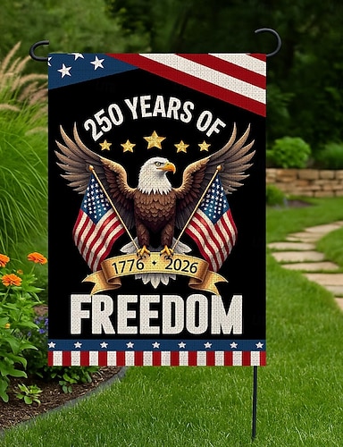 2 Stück USA-Gartenflaggen zum 250. Jahrestag (1776–2026), patriotische amerikanische Geburtstagsflagge für den Außenbereich, geeignet für Garten, Rasen, Veranda oder als Dekoration zum