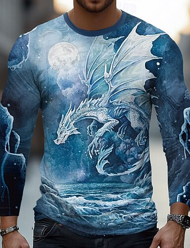 Herren Tiermotiv Drache 3D T Shirt Langarm T-Shirt 3D-Druck Rundhalsausschnitt Hemd Mode Basic Straße Lässig Täglich Blau 2# Blau 1# Sommer Frühling Bekleidung S M L XL XXL XXXL