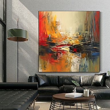 Großes, handgefertigtes abstraktes Ölgemälde in Rot und Graugold, strukturierte moderne Wandkunst, abstraktes Wandbild mit maritimer Hafenszene, Wandkunst im Ölgemälde-Look