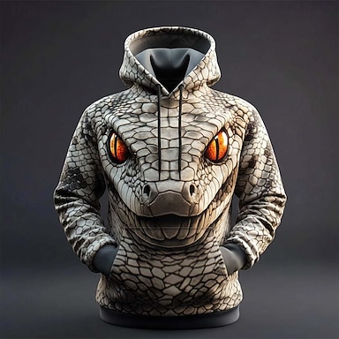 3D-Hoodie mit realistischem Schlangenkopf-Print in Türkisgrün, Herren, Allover-Print, orange Augen, Schuppenstruktur, Pullover, Bekleidung, Größen S, M, L, XL, XXL, XXXL