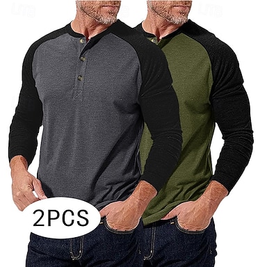 Herren T Shirt Henley Hemd Waffelstrick T-Shirt T-Shirt Langarmshirt Langarm Farbblock Einheitliche Farbe Mode Designer Basic 2 teilig Mehrfachpackung Henley Urlaub Straße Lässig Frühling & Herbst