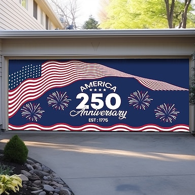 4. Juli 2026 250. Gedenktag Garagentorabdeckung Große hängende Kulisse Amerikanische Flagge Vintage 3D Patriotische Party Outdoor Shooting Hintergründe Eingangstür Wohnkultur