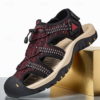 Rote und schwarze Outdoor-Wandersandalen für Herren – geschlossene Sportschuhe mit verstellbaren Riemen für Trekkingtouren und Sommerabenteuer