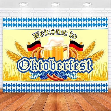 Oktoberfest Deutsche Bayerische Hängetapete Brezel Bier Wandkunst Blau Weiß Karomuster Große Tapete Wandbild Dekor Fotografischer Hintergrund Festival