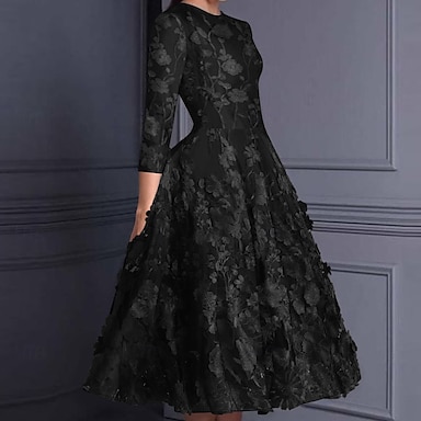A-Linie Knöchellänge Tee-Länge Cocktailkleider Elegant Vintage Blumen Langarm Rundhalsausschnitt Formell Hochzeitsgast Tasche Satin Jacquard Tiefer Wasserfall-Rückenausschnitt mit Blumenmuster