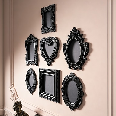 Dekorativer Vintage-Rahmen aus schwarzem Kunstharz, handgefertigt und handbemalt, reich verziert, für DIY-Wanddekoration, Fotorahmen, Wanddekoration für Partys und Feste