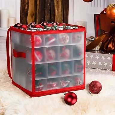 Aufbewahrungsbox für Weihnachtsschmuck mit 64 Fächern, 30 x 30 x 30 cm große Aufbewahrungsboxen, Organizer mit Reißverschluss und Tragegriffen, geeignet für Weihnachtsdekoration, Schmuck und Geschenke