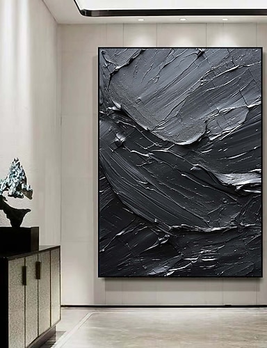 Handgefertigtes Ölgemälde auf Leinwand, Wandkunst, Dekoration, farbenfroher abstrakter Schwarz-Weiß-Minimalismus für die Inneneinrichtung, gerolltes, rahmenloses, ungedehntes Gemälde