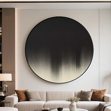 handgefertigte kreisförmige rein schwarze Galerie-Leinwand, modern strukturiert, mattes Finish, minimalistisches Statement-Wandbild, glatte Oberfläche, feiner Kantenkontrast, fertig zum Aufhängen,