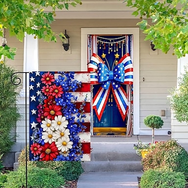 Unabhängigkeitstag 4. Juli Türdekorationen Türabdeckungen und patriotische Gartenflagge amerikanische Innen/Außen-Patiodekor