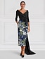 A-Linie Schlauchkleid Bodenlang Perlenbestickt Abendkleid Kleid der Brautmutter Abendkleid Elegant Hoher Schlitz Dreiviertelarm Schulterfrei Hochzeit Formell Satin mit Blumenmuster Schlitz