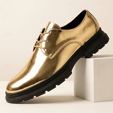 Goldene Metallic-Derby-Schnürschuhe für Herren, elegante, glänzende und formelle Schuhe für Hochzeiten, Partys, Bankette, Abschlussbälle und Bühnenauftritte
