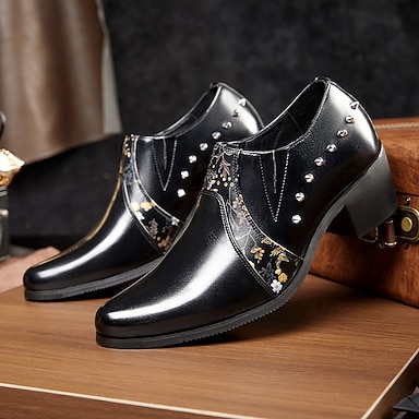 Schwarze Herren-Lackschuhe aus Kunstleder mit Nieten – trendige, formelle Schuhe für Partys, Abschlussbälle und angesagte Events