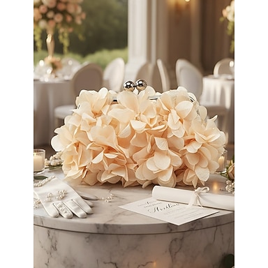 Elegante Damen-Clutch aus Polyester mit floralem Muster, kurzem Kettenriemen, 3D-Blütenblattdesign, in verschiedenen Farben erhältlich, leichte Abendtasche, perfekt für Hochzeiten, Partys und formelle Anlässe
